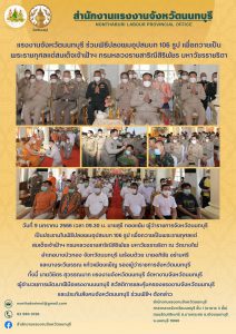 แรงงานจังหวัดนนทบุรี ร่วมพิธีปลงผมอุปสมบท 106 รูป เพื่อถวายเป็น พระราชกุศลแด่สมเด็จเจ้าฟ้าฯ กรมหลวงราชสาริณีสิริพัชร มหาวัชรราชธิดา