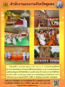แรงงานจังหวัดชุมพร ร่วมพิธีบรรพชาอุปสมบท 99 รูป ถวายพรพระชัยมงคลสมเด็จพระเจ้าลูกเธอ เจ้าฟ้าพัชรกิติยาภา นเรนทิราเทพยวดี กรมหลวงราชสาริณีสิริพัชร มหาวัชรราชธิดา