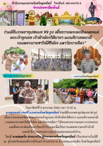 แรงงานจังหวัดตรัง ร่วมพิธีบรรพชาอุปสมบท 99 รูป ถวายพระพรชัยมงคลแด่สมเด็จพระเจ้าลูกเธอ เจ้าฟ้าพัชรกิติยาภา นเรนทิราเทพยวดี กรมหลวงราชสาริณีสิริพัชร มหาวัชรราชธิดา