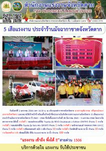 5 เสือแรงงาน ประจำร้านมัจฉากาชาดจังหวัดตาก ปี 2565 – 2566
