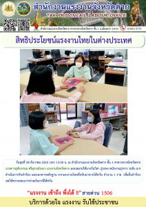 สำนักงานแรงงานจังหวัดพิจิตร ให้คำปรึกษา แนะนำ แก่ญาติแรงงานไทยที่เดินทางไปทำงานประเทศซาอุดิอาระเบีย