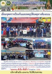 แรงงานจังหวัดตาก ร่วมตรวจเยี่ยมจุดตรวจป้องกันและลดอุบัติเหตุทางท้องถนน