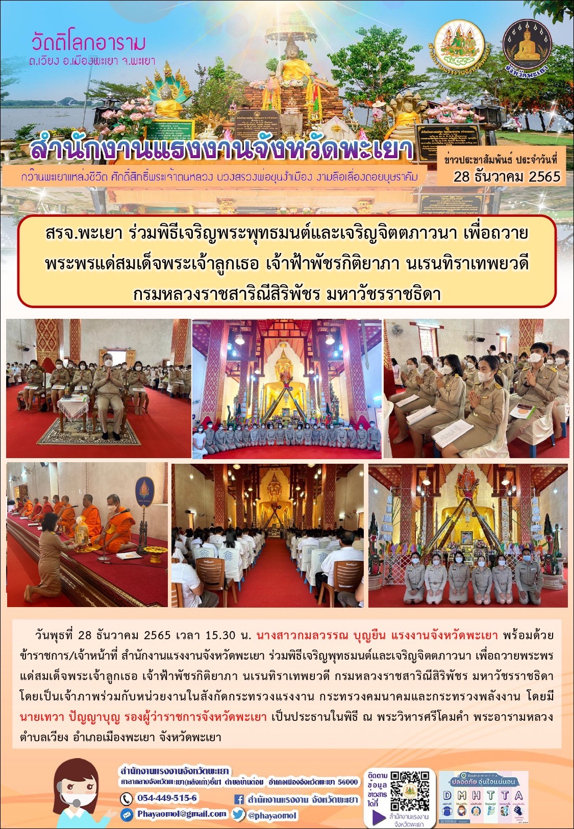 สรจ.พะเยา ร่วมพิธีเจริญพระพุทธมนต์และเจริญจิตตภาวนา เพื่อถวายพระพรแด่สมเด็จพระเจ้าลูกเธอ เจ้าฟ้าพัชรกิติยาภา นเรนทิราเทพยวดี กรมหลวงราชสาริณีสิริพัชร มหาวัชรราชธิดา