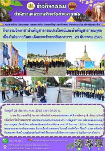 สรจ.กำแพงเพชร กิจกรรมจิตอาสาบำเพ็ญสาธารณประโยชน์และบำเพ็ญสาธารณกุศล เนื่องในโอกาสวันสมเด็จพระเจ้าตากสินมหาราช 28 ธันวาคม 2565