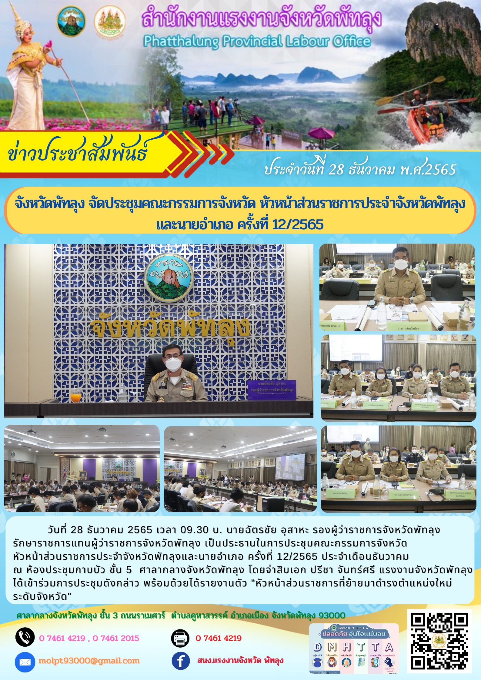 จังหวัดพัทลุง จัดประชุมคณะกรรมการจังหวัด หัวหน้าส่วนราชการประจำจังหวัดพัทลุงและนายอำเภอ ครั้งที่ 12/2565