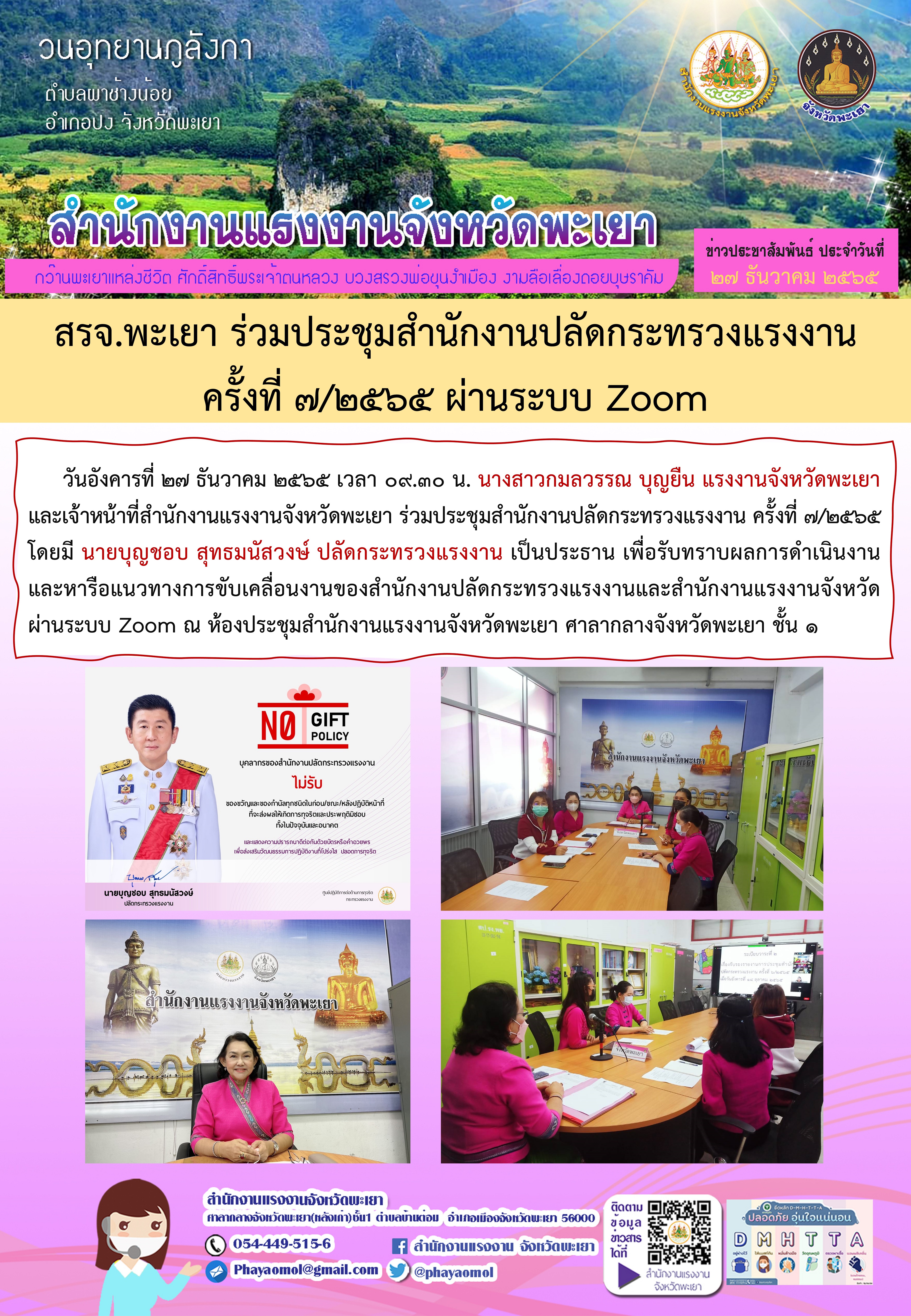 สรจ.พะเยา ร่วมประชุมสำนักงานปลัดกระทรวงแรงงาน ครั้งที่ 7/2565