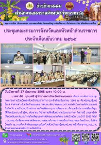 สรจ.กำแพงเพชร ประชุมคณะกรมการจังหวัดและหัวหน้าส่วนราชการ ประจำเดือนธันวาคม 2565