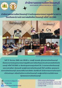 สำนักงานแรงงานจังหวัดนนทบุรี ร่วมประชุมคณะรักษาความมั่นคงและความสงบเรียบร้อยจังหวัดนนทบุรี ครั้งที่ 9/2565
