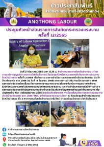 สรจ.อ่างทอง ประชุมหัวหน้าส่วนราชการสังกัดกระทรวงแรงงาน ครั้งที่ 12/2565