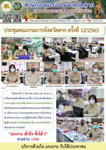 แรงงานจังหวัดตาก ร่วมประชุมคณะกรมการจังหวัดตาก ครั้งที่ 12/2565