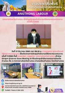 แรงงานจังหวัดอ่างทอง เข้าร่วมประชุมสำนักงานปลัดกระทรวงแรงงาน ครั้งที่ 7/2565