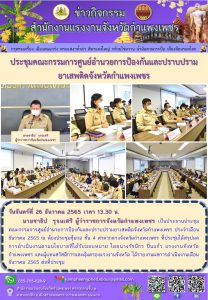 สรจ.กำแพงเพชร ประชุมคณะกรรมการศูนย์อำนวยการป้องกันและปราบปรามยาเสพติดจังหวัดกำแพงเพชร