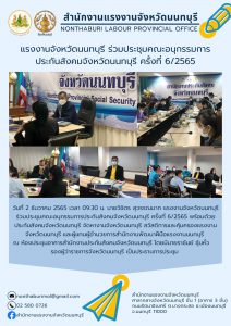 แรงงานจังหวัดนนทบุรี ร่วมประชุมคณะอนุกรรมการประกันสังคมจังหวัดนนทบุรี ครั้งที่ 6/2565