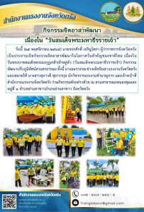 แรงงานจังหวัดตรัง มอบหมายให้ นางสาวสุภาวดี สุถาวรกุล นักวิชาการแรงงานชำนาญการ และเจ้าหน้าที่สำนักงานแรงงานจังหวัดตรัง ร่วมกิจกรรมจิตอาสาพัฒนา เนื่องใน “วันสมเด็จพระมหาธีรราชเจ้า”