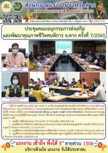 แรงงานจังหวัดตาก ร่วมประชุมคณะอนุกรรมการส่งเสริมและพัฒนาคุณภาพชีวิตคนพิการ จ.ตาก ครั้งที่ 7/2565