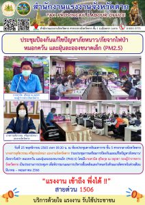 แรงงานจังหวัดตาก ร่วมประชุมป้องกันแก้ไขปัญหาภัยหนาว/ภัยจากไฟป่า หมอกควัน และฝุ่นละอองขนาดเล็ก (PM2.5)