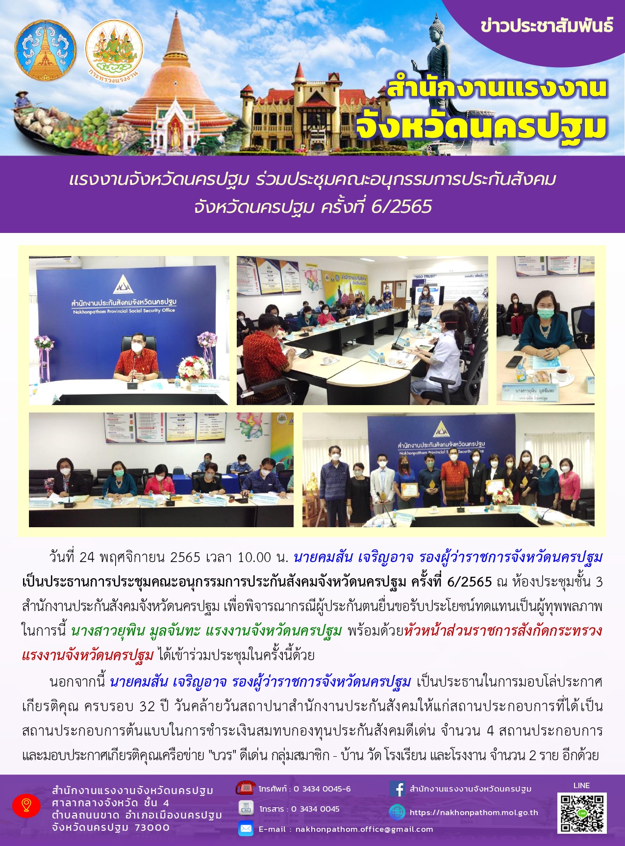 แรงงานจังหวัดนครปฐม ร่วมประชุมคณะอนุกรรมการประกันสังคมจังหวัดนครปฐม ครั้งที่ 6/2565