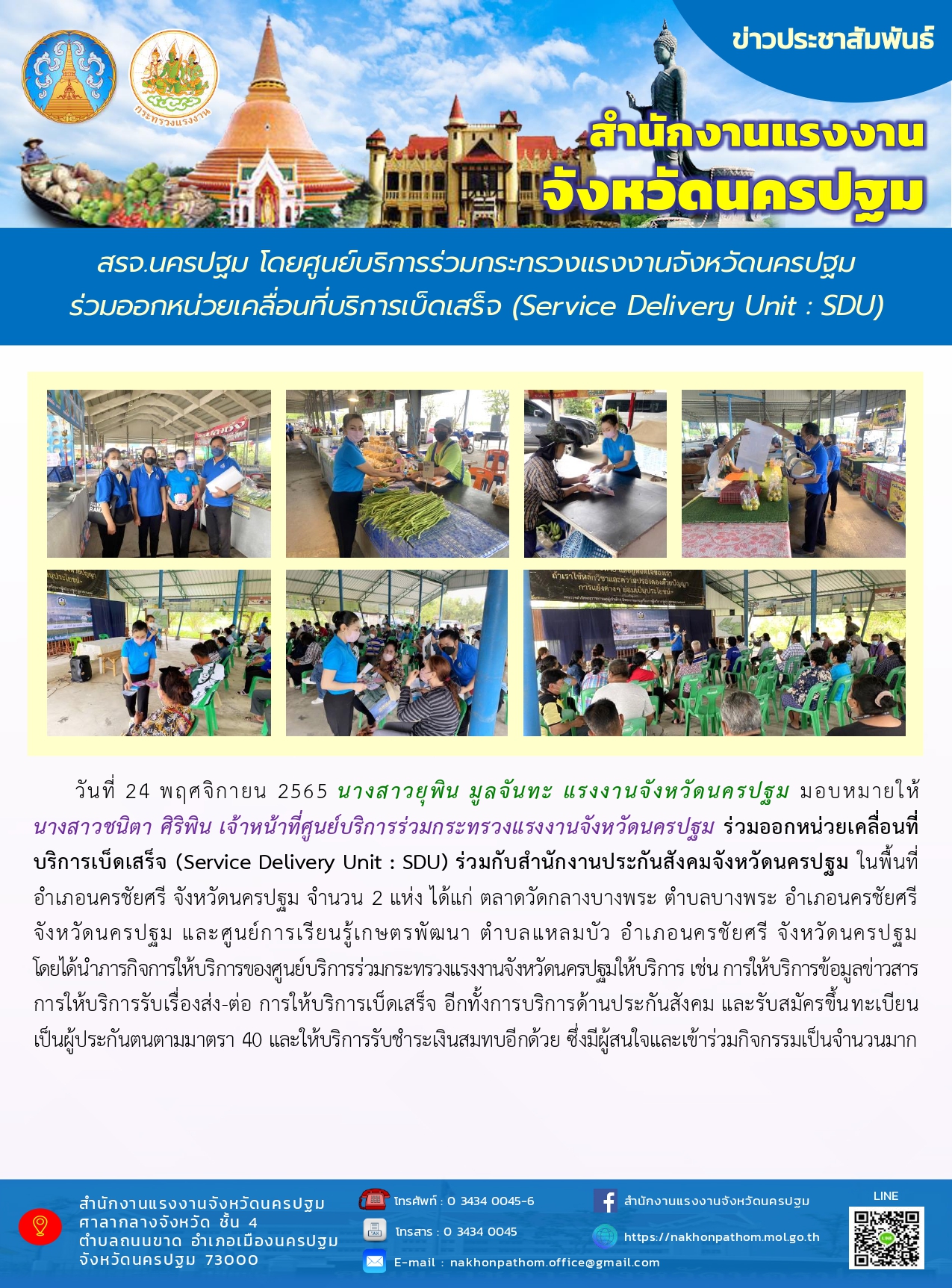 สรจ.นครปฐม โดยศูนย์บริการร่วมกระทรวงแรงงานจังหวัดนครปฐม ร่วมออกหน่วยเคลื่อนที่บริการเบ็ดเสร็จ (Service Delivery Unit : SDU)