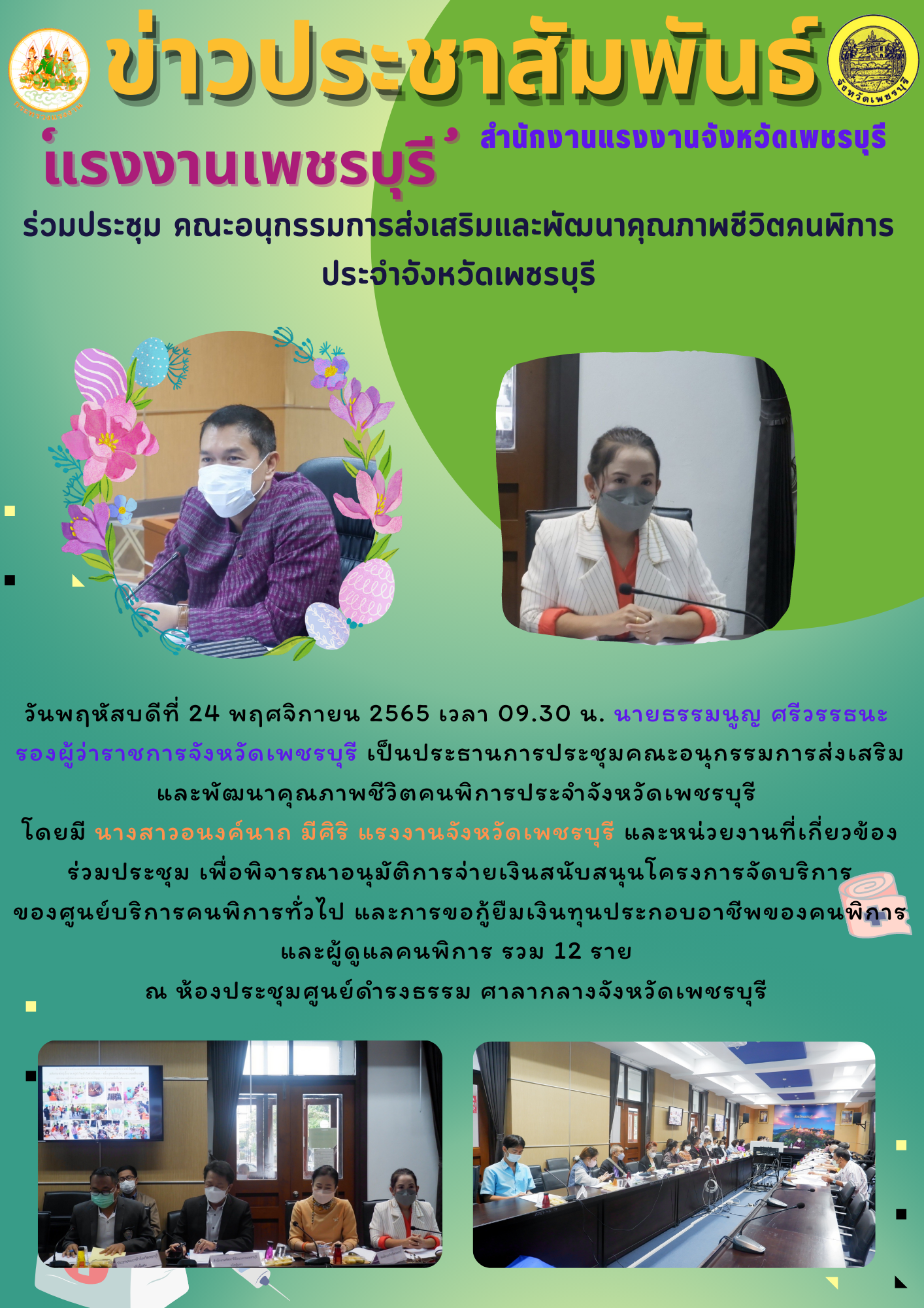 ‘แรงงานเพชรบุรี’ ร่วมประชุมคณะอนุกรรมการส่งเสริมและพัฒนาคุณภาพชีวิตคนพิการ ประจำจังหวัดเพชรบุรี