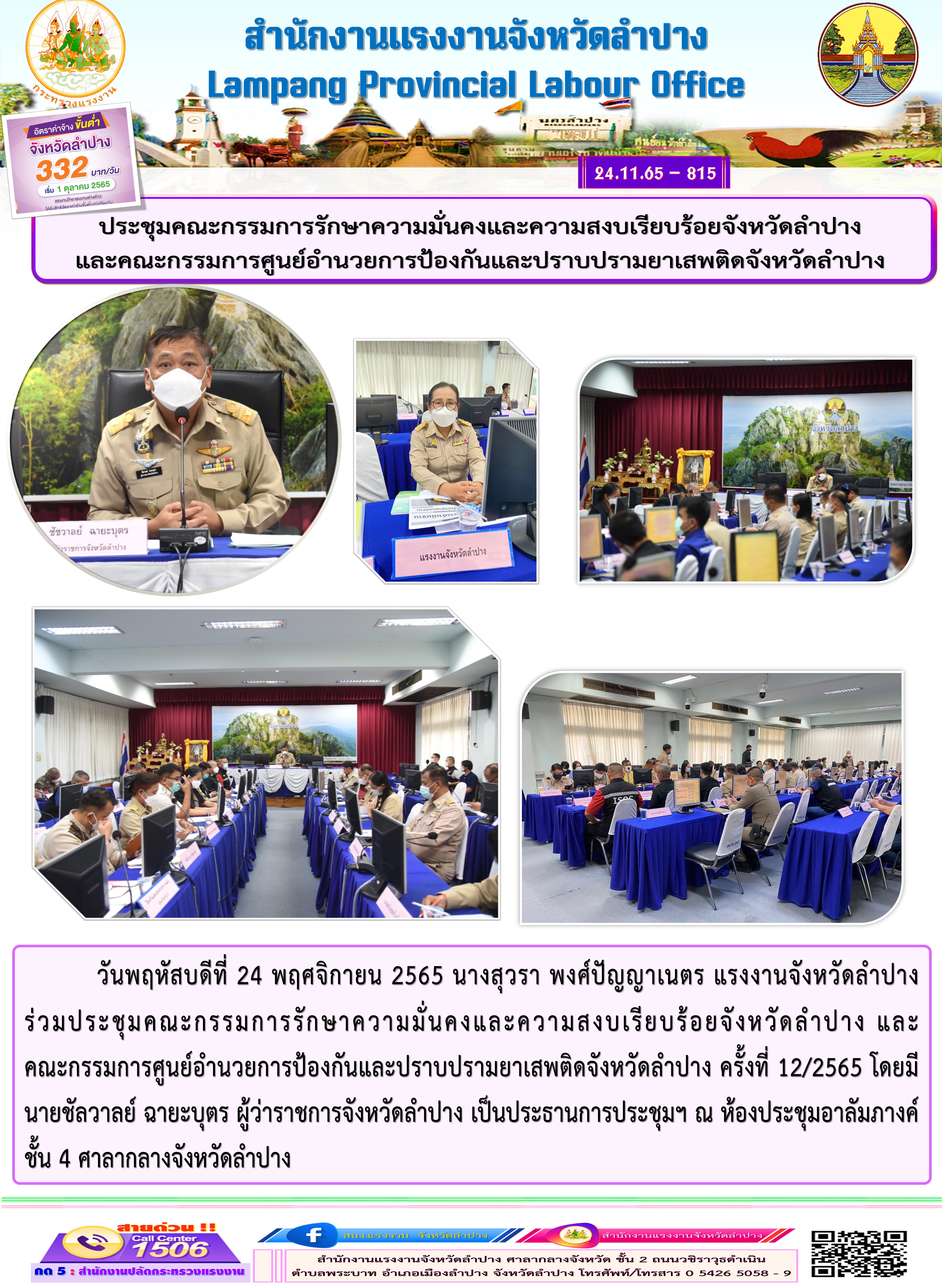 ประชุมคณะกรรมการรักษาความมั่นคงและความสงบเรียบร้อยจังหวัดลำปาง และคณะกรรมการศูนย์อำนวยการป้องกันและปราบปรามยาเสพติดจังหวัดลำปาง