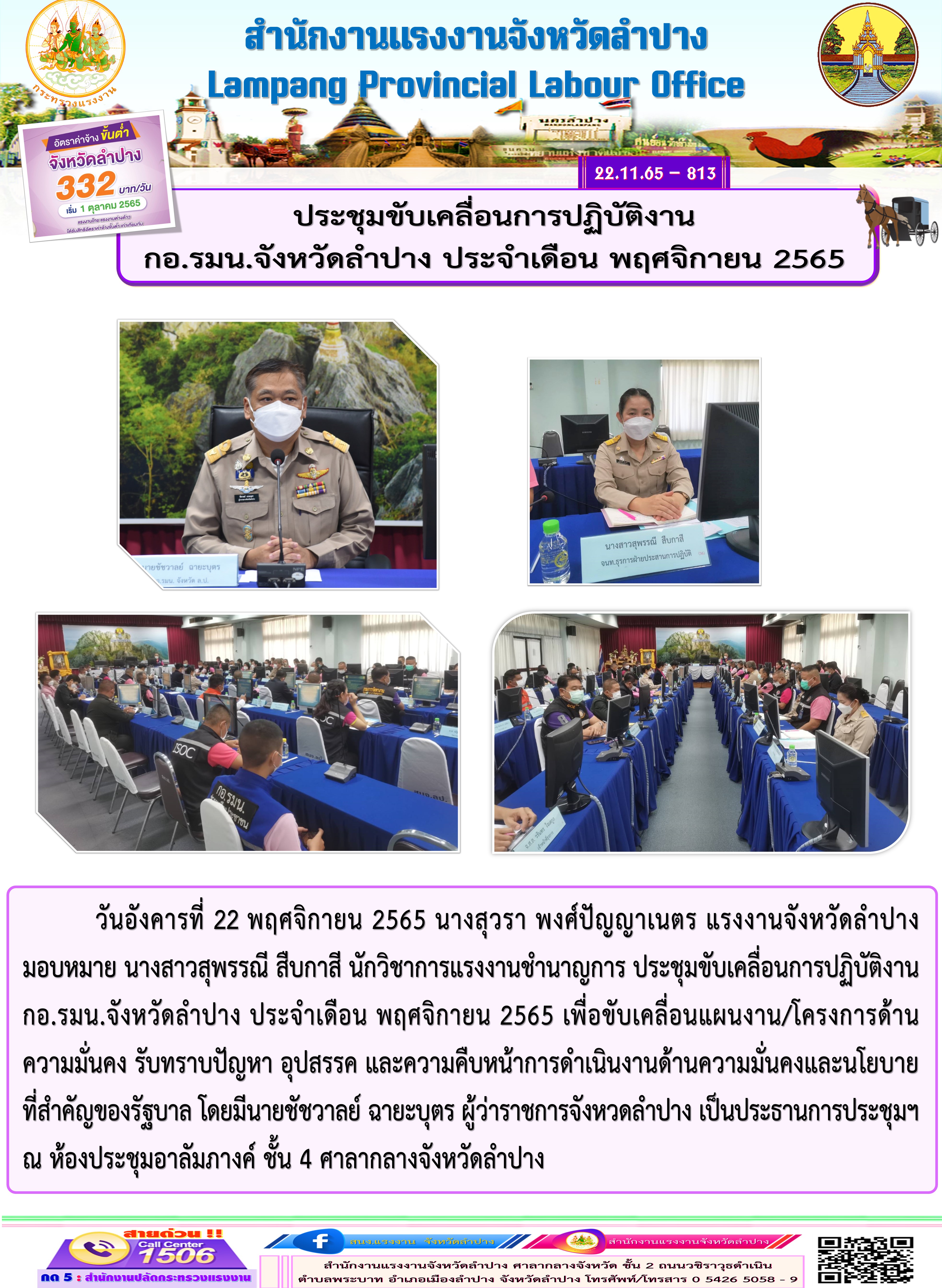 ประชุมขับเคลื่อนการปฏิบัติงาน กอ.รมน.จังหวัดลำปาง ประจำเดือน พฤศจิกายน 2565