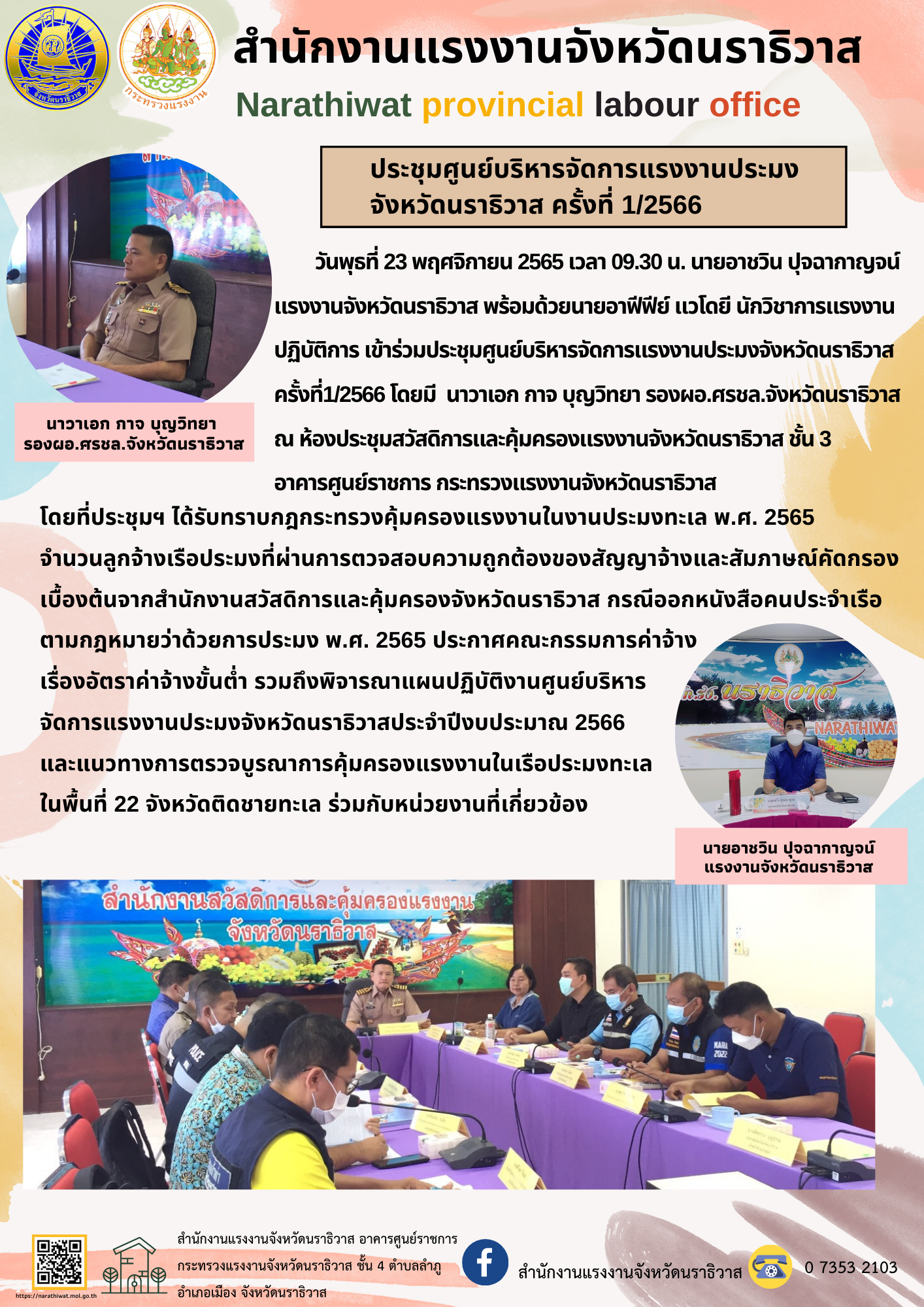 ประชุมศูนย์บริหารจัดการแรงงานประมง จังหวัดนราธิวาส ครั้งที่ 1/2566