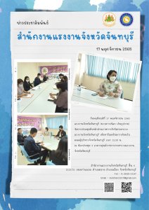 แรงงานจังหวัดจันทบุรี (นางสาววนิดา เงินรูปงาม) จัดการประชุมหัวหน้าส่วนราชการสังกัดกระทรวงแรงงานจังหวัดจันทบุรี เพื่อหารือเตรียมการต้อนรับ คณะผู้บริหารจังหวัดจันทบุรี