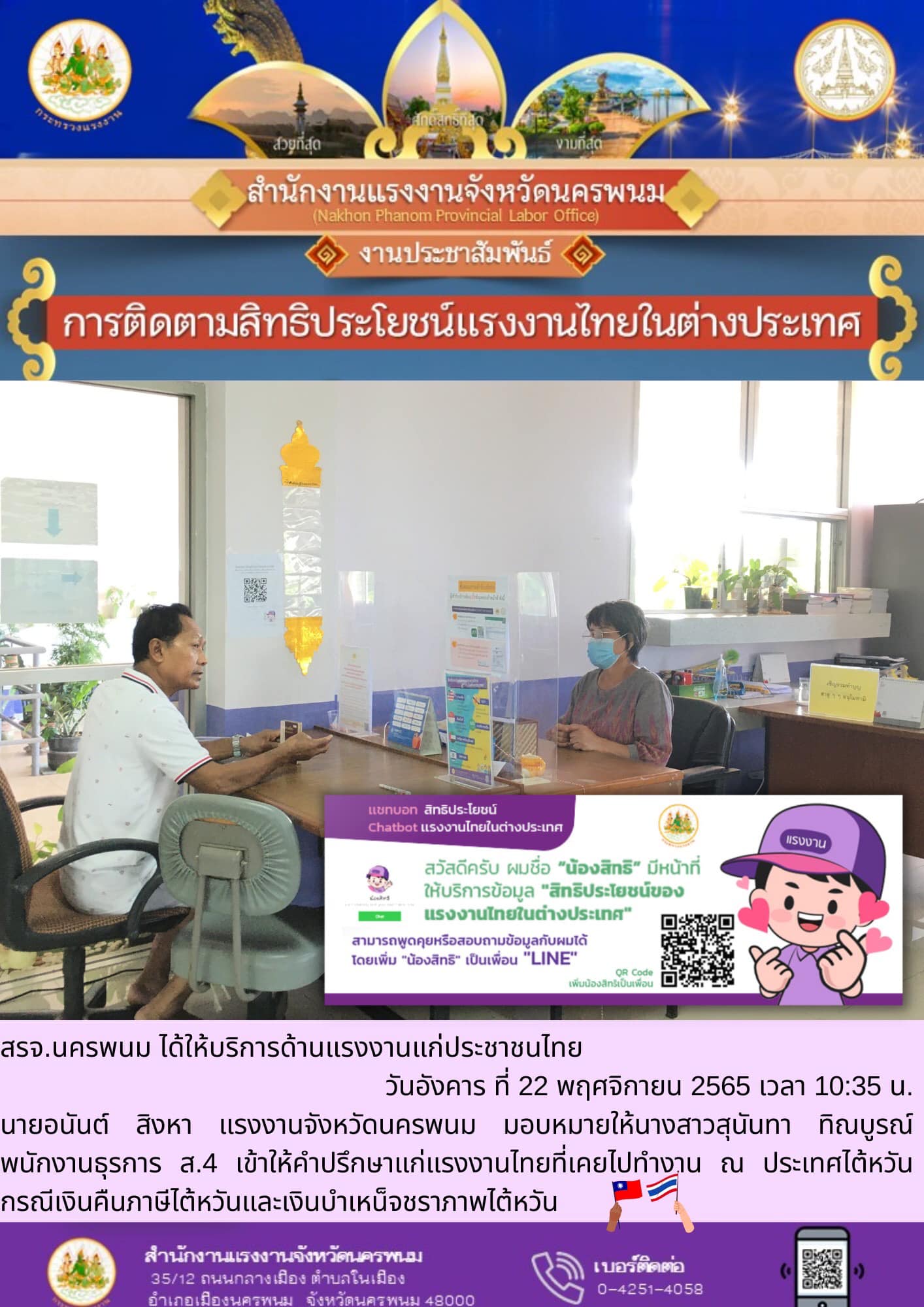 สรจ.นครพนม ให้คำปรึกษาแรงงานไทยที่ไปทำงาน ณ ไต้หวัน