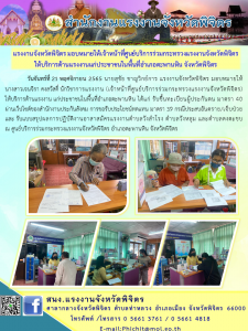 แรงงานจังหวัดพิจิตร มอบหมายให้เจ้าหน้าที่ศูนย์บริการร่วมกระทรวงแรงงานจังหวัดพิจิตร ให้บริการด้านแรงงานแก่ประชาชนในพื้นที่อำเภอตะพานหิน จังหวัดพิจิตร