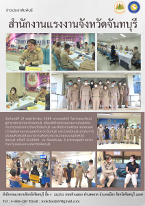 นายมนต์ตรี ไพศาลธนวัฒน์ ผู้ว่าราชการจังหวัดจันทบุรี เยี่ยมให้กำลังใจหน่วยงานในสังกัดกระทรวงแรงงานจังหวัดจันทบุรี และสำนักงานพัฒนาสังคมและตวามมั่นคงของมนุษย์จังหวัดจันทบุรี และร่วมเป็นประธานในการประชุมหัวหน้าส่วนราชการสังกัดกระทรวงแรงงานจังหวัดจันทบุรี ครั้งที่ 10/2565
