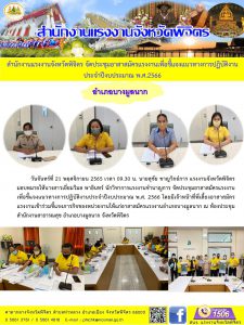 สำนักงานแรงงานจังหวัดพิจิตร จัดประชุมอาสาสมัครแรงงานเพื่อชี้แจงแนวทางการปฏิบัติงานประจำปีงบประมาณ พ.ศ.2566