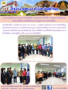 สำนักงานแรงงานจังหวัดพิจิตร ให้คำปรึกษาประชาชนเพื่อขอรับเงินบำเหน็จชราภาพ จากกองทุนประกันภัยแรงงานไต้หวัน