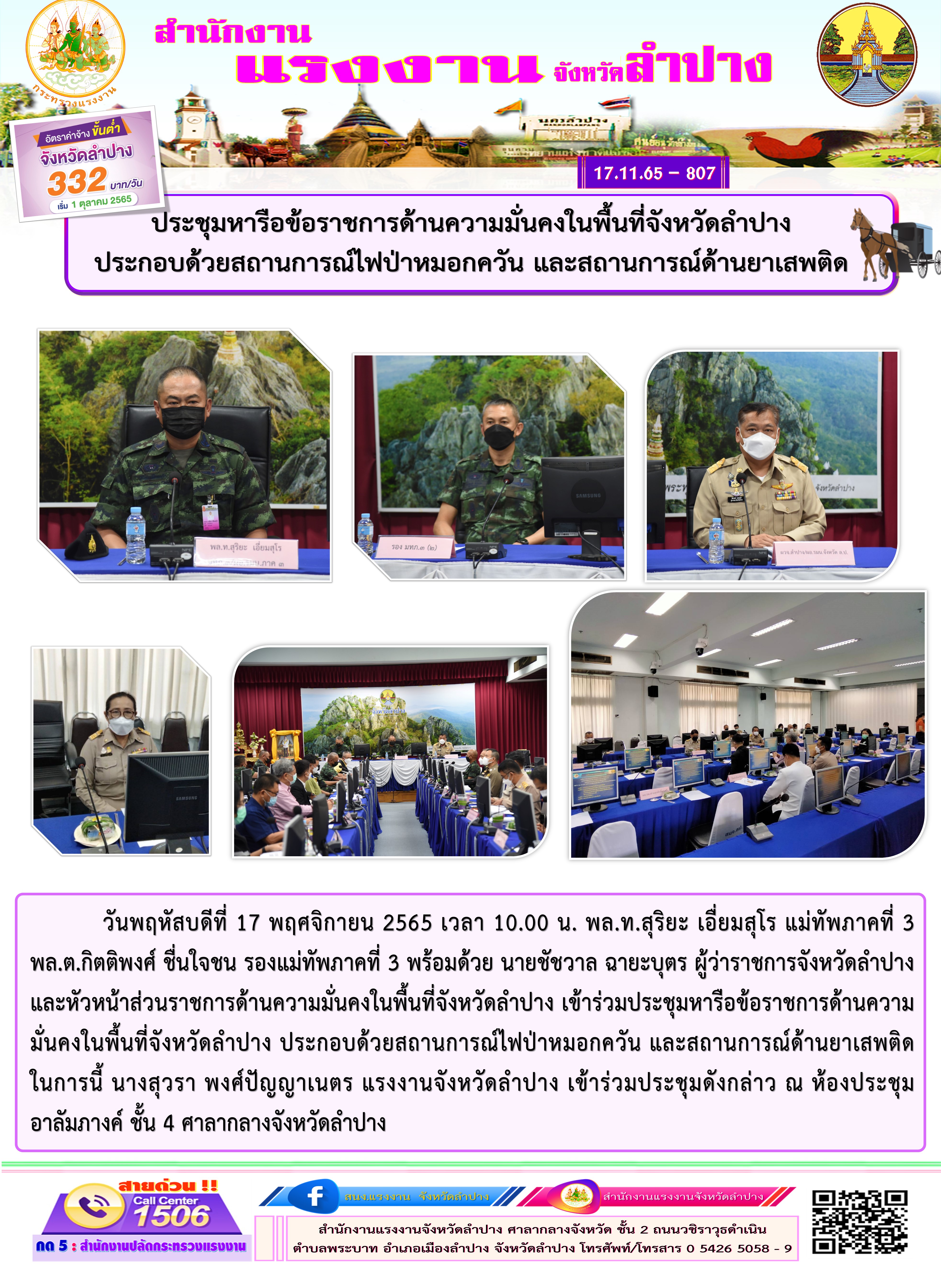 ประชุมหารือข้อราชการด้านความมั่นคงในพื้นที่จังหวัดลำปางประกอบด้วยสถานการณ์ไฟป่าหมอกควัน และสถานการณ์ด้านยาเสพติด