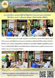 แรงงานจังหวัดตาก มอบหมายให้เจ้าหน้าที่ศูนย์บริการร่วมกระทรวงแรงงานจังหวัดตาก ให้คำปรึกษา แนะนำ การยื่นเอกสารหลักฐานให้กับแรงงานไทย เพื่อรับเงินคืนภาษีไต้หวัน