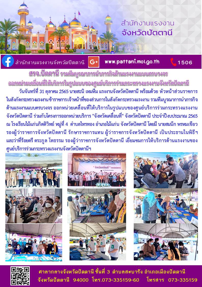 สรจ.ปน รวมทีมบูรณาการนำภารกิจด้านแรงงานแบบครบวงจร ออกหน่วยเคลื่อนที่ให้บริการในรูปแบบของศูนย์บริการร่วมกระทรวงแรงงานจังหวัดปัตตานี