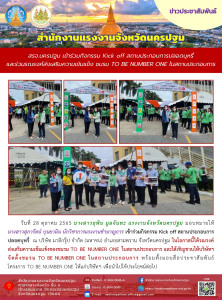 สรจ.นครปฐม เข้าร่วมกิจกรรม Kick off สถานประกอบการปลอดบุหรี่ และร่วมรณรงค์ส่งเสริมความเข้มแข็ง ชมรม TO BE NUMBER ONE ในสถานประกอบการ