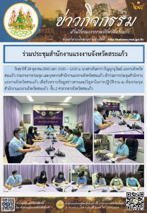 สรจ.สระแก้ว ร่วมการประชุมสำนักงานแรงงานจังหวัดสระแก้ว เพื่อรับทราบข้อมูลข่าวสารและปัญหาในการปฏิบัติงาน ณ ห้องประชุมสำนักงานแรงงานจังหวัดสระแก้ว ชั้น 2 ศาลากลางจังหวัดสระแก้ว