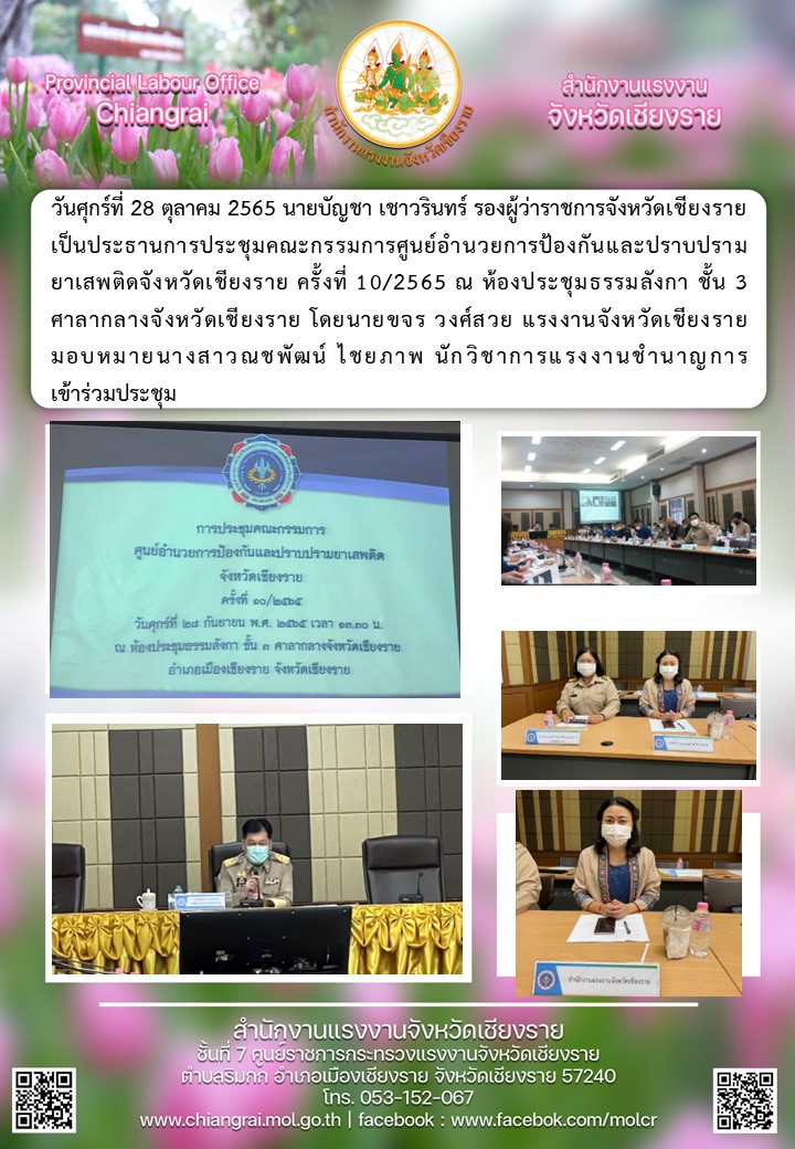 ผู้แทนแรงงานจังหวัด ร่วมประชุมคณะกรรมการศูนย์อำนวยการป้องกันและปราบปรามยาเสพติดจังหวัดเชียงราย ครั้งที่10/2565