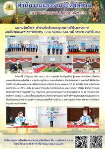 แรงงานจังหวัดตาก เข้าร่วมต้อนรับคณะอนุกรรมการตัดสินการประกวดและเก็บคะแนนการประกวดกิจกรรม TO BE NUMBER ONE ระดับประเทศ ประจำปี 2565