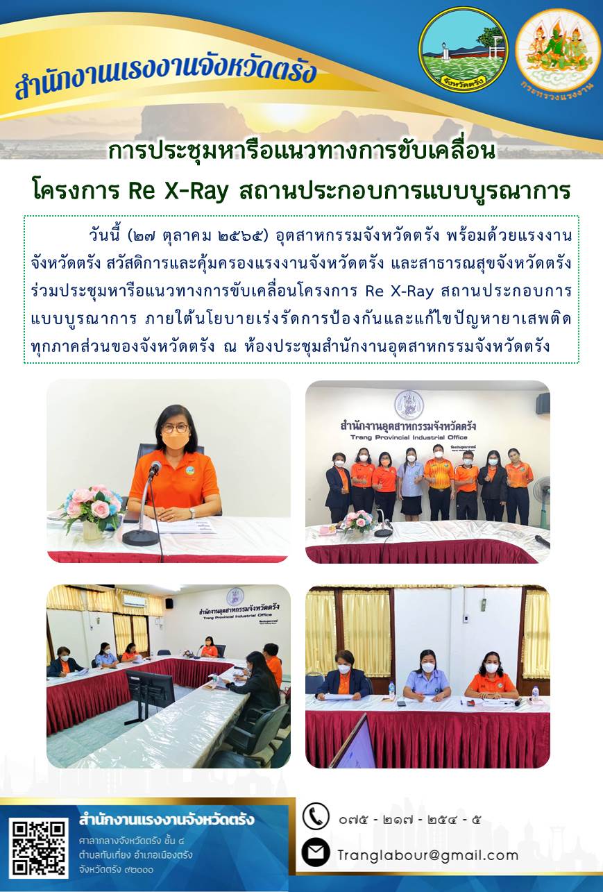แรงงานจังหวัดตรัง ร่วมประชุมหารือแนวทางการขับเคลื่อนโครงการ Re X-Ray สถานประกอบการแบบบูรณาการ