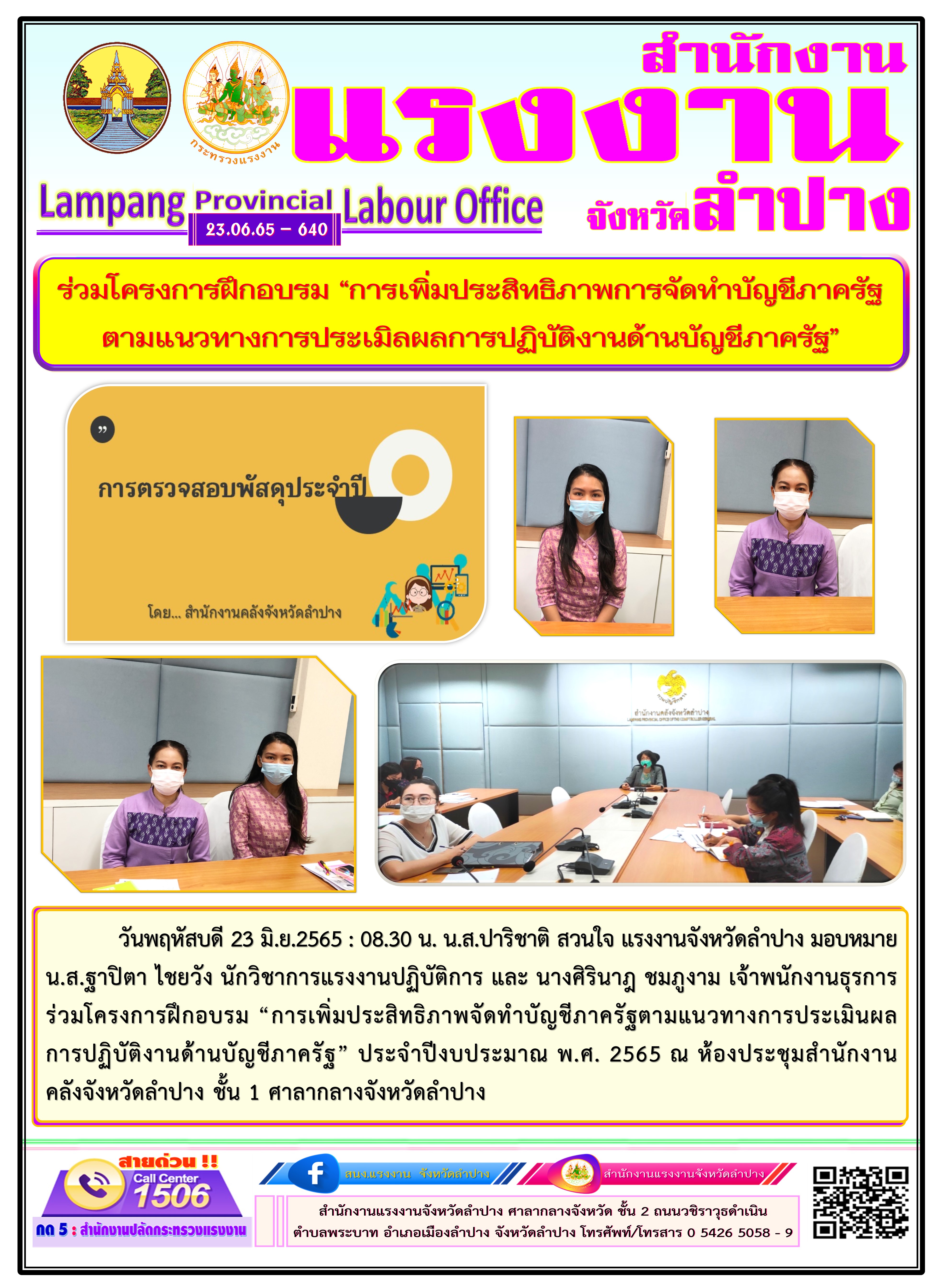 สรจ.ลำปาง ร่วมโครงการฝึกอบรม “การเพิ่มประสิทธิภาพการจัดทำบัญชีภาครัฐตามแนวทางการประเมิลผลการปฏิบัติงานด้านบัญชีภาครัฐ”