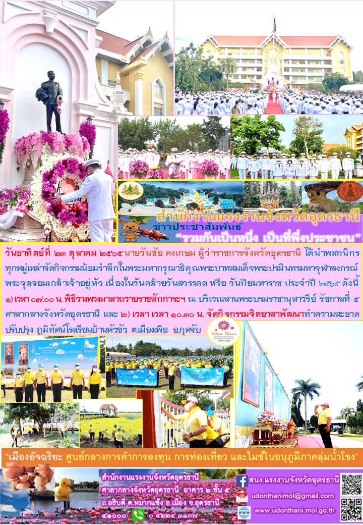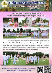 แรงงานจังหวัดตาก ร่วมพิธีน้อมรำลึกเนื่องในวันคล้ายวันสวรรคตพระบาทสมเด็จพระจุลจอมเกล้าเจ้าอยู่หัว 23 ตุลาคม 2565