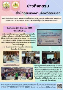 สรจ.ระนอง ร่วมโครงการอบรมเชิงปฏิบัติการหลักสูตรการจัดซื้อจัดจ้างภาครัฐด้วยวิธีการทางอิเล็กทรอนิกส์ (Electronic Government Procuremant : e-GP) สำหรับเจ้าหน้าที่ผู้ปฏิบัติงานของหน่วยงานของรัฐ