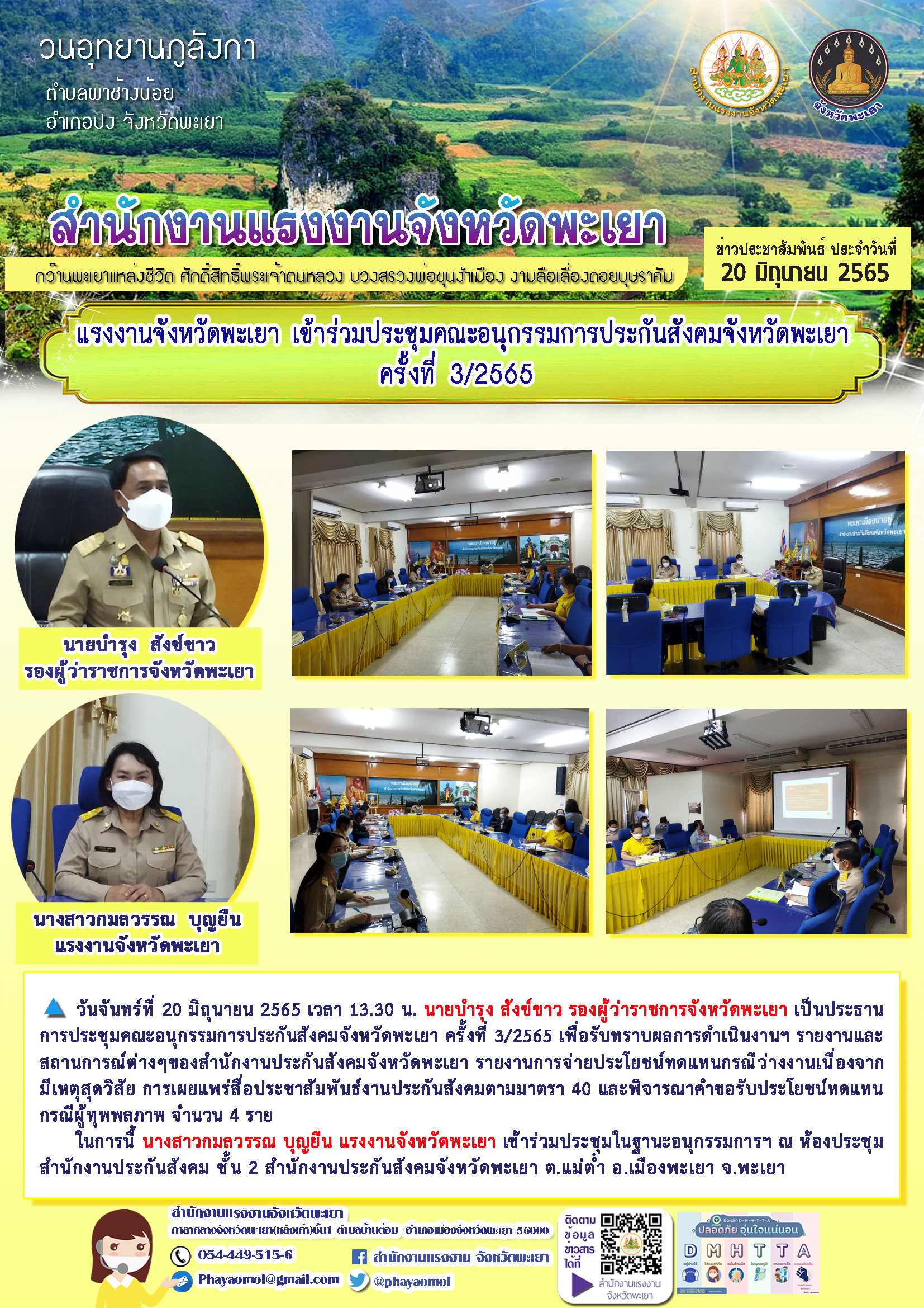 แรงงานจังหวัดพะเยา เข้าร่วมประชุมคณะอนุกรรมการประกันสังคมจังหวัดพะเยา ครั้งที่ 3/2565