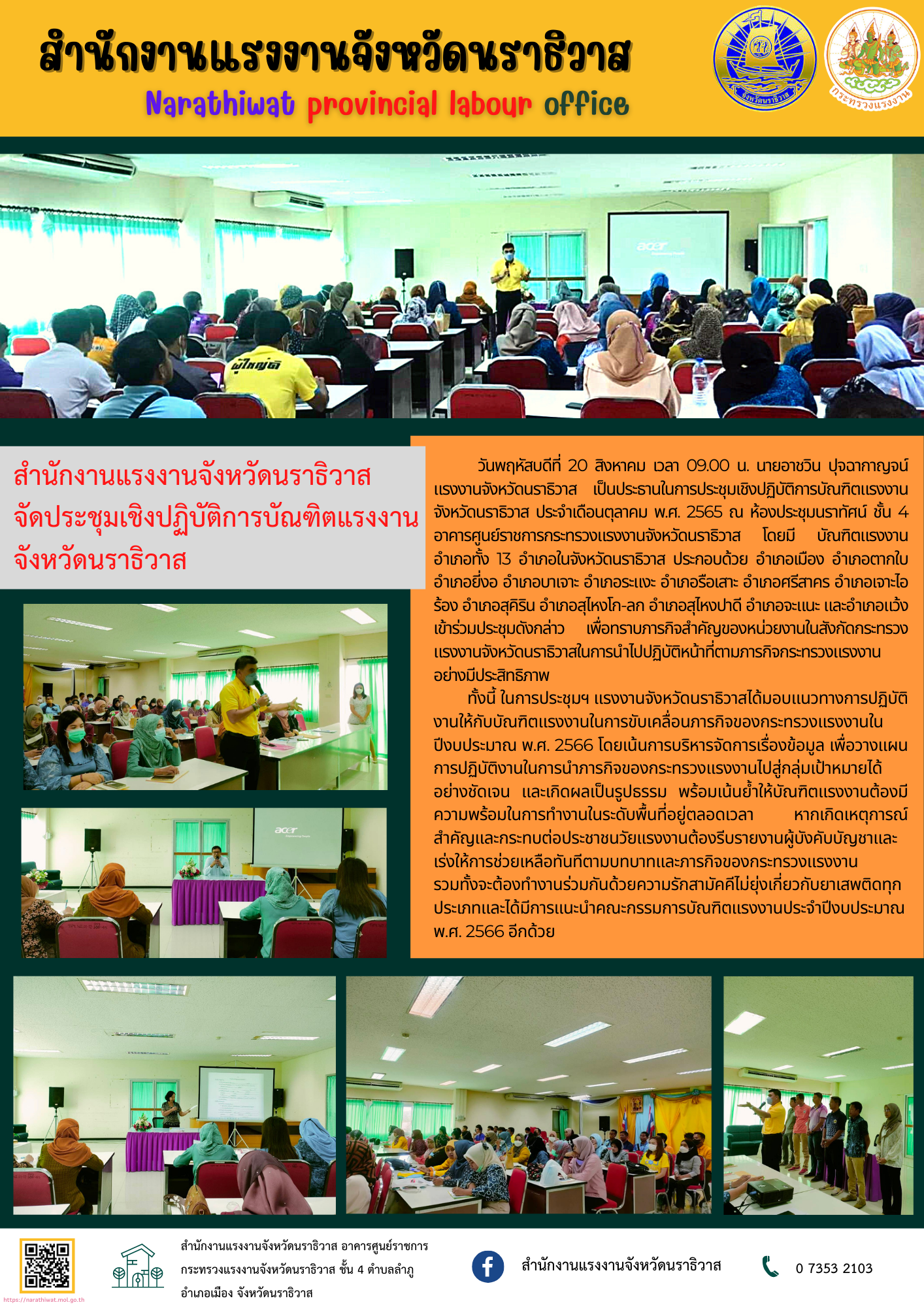 สำนักงานแรงงานจังหวัดนราธิวาส จัดประชุมเชิงปฏิบัติการบัณฑิตแรงงานจังหวัดนราธิวาส