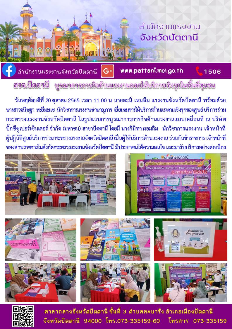 สรจ.ปัตตานี บูรณาการภารกิจด้านแรงงานออกให้บริการเชิงรุกในพื้นที่ชุมชน