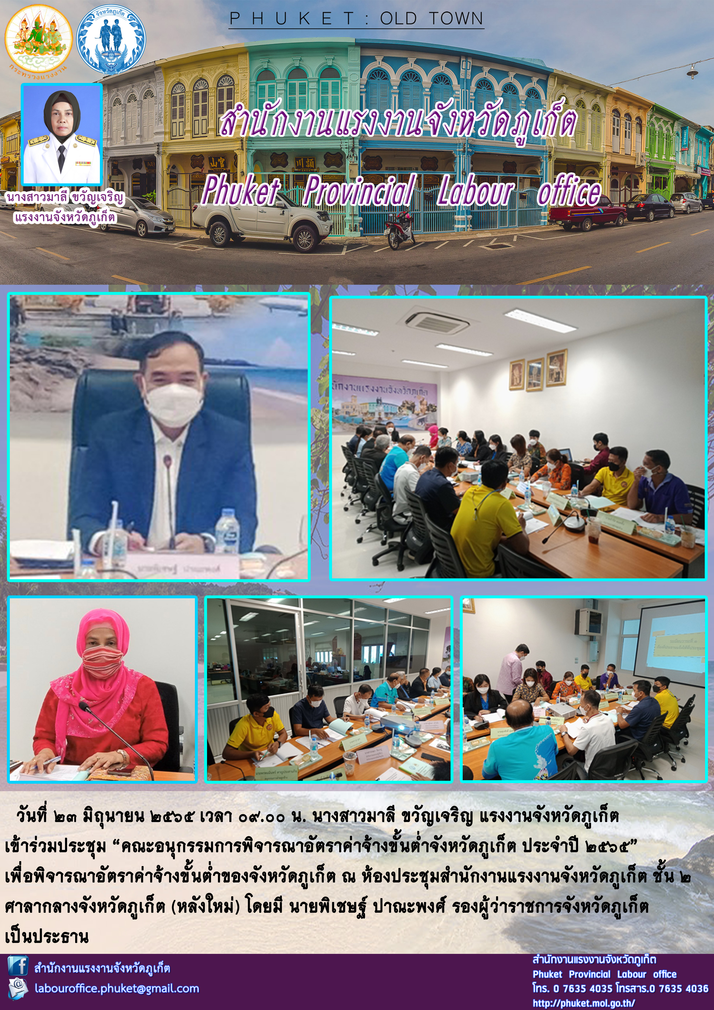 นางสาวมาลี ขวัญเจริญ แรงงานจังหวัดภูเก็ต เข้าร่วมประชุม “คณะอนุกรรมการพิจารณาอัตราค่าจ้างขั้นต่ำจังหวัดภูเก็ต ประจำปี 2565”