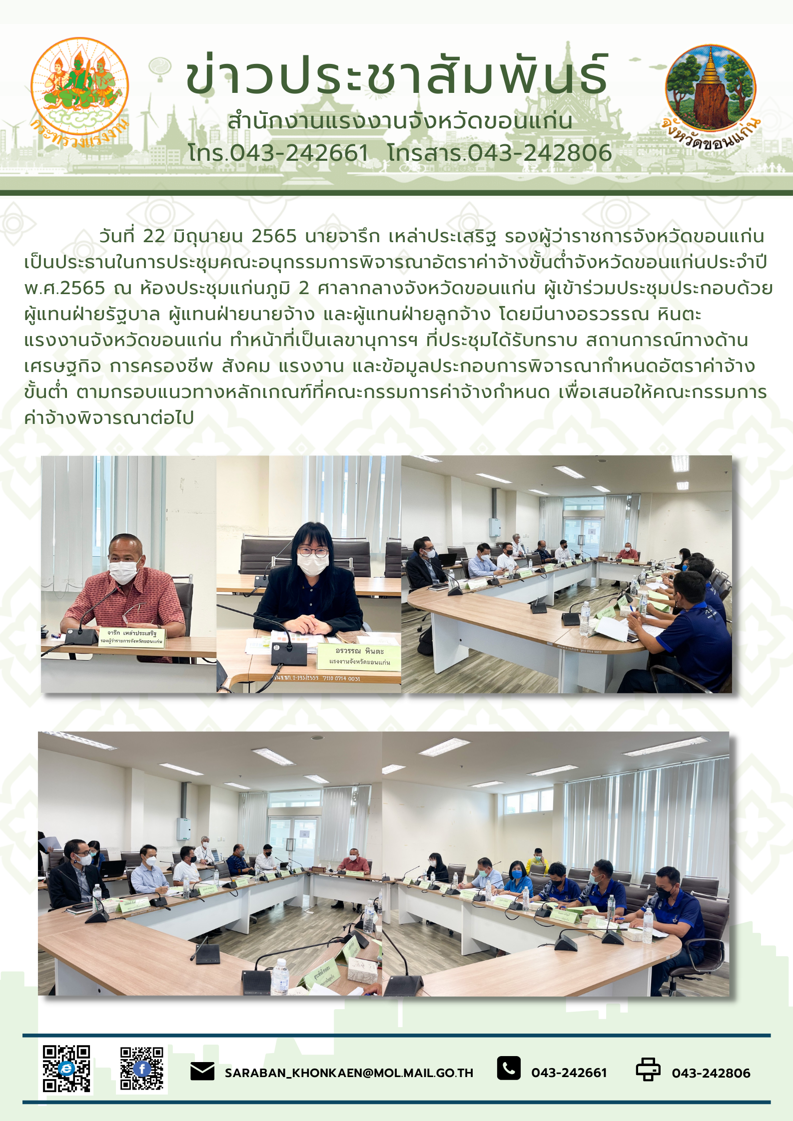 การประชุมคณะอนุกรรมการพิจารณาอัตราค่าจ้างขั้นต่ำจังหวัดขอนแก่นประจำปี พ.ศ.2565
