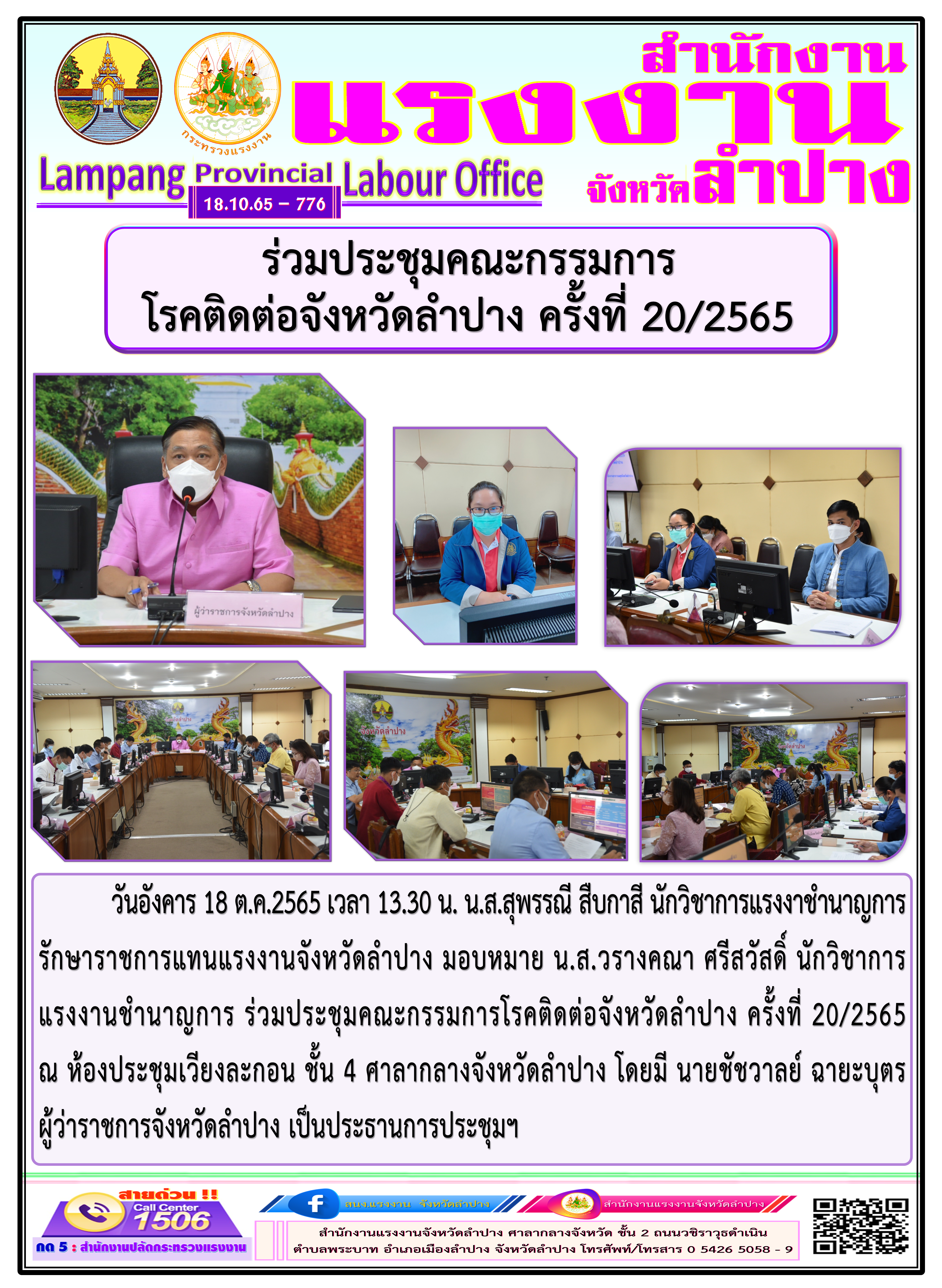 ร่วมประชุมคณะกรรมการโรคติดต่อจังหวัดลำปาง ครั้งที่ 20/2565