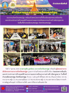 แรงงานจังหวัดนครปฐม พร้อมด้วยหน่วยงานที่เกี่ยวข้องออกตรวจป้องกันและปราบปรามการค้ามนุษย์ด้านแรงงานและกวดขันแรงงานต่างด้าวผิดกฎหมาย ในพื้นที่อำเภอเมืองนครปฐม จังหวัดนครปฐม